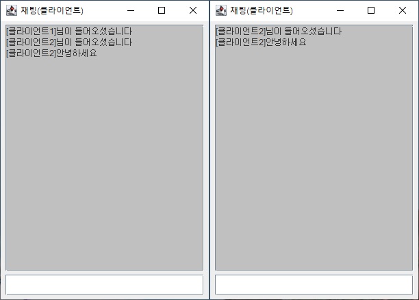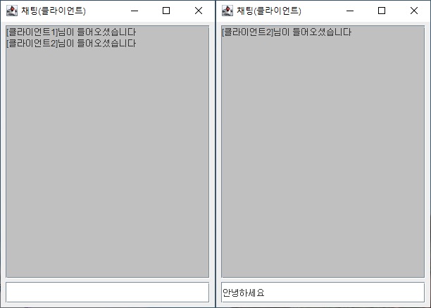 E006 // 서버로 데이터([CHAT] [클라이언트2]안녕하세요) 전송