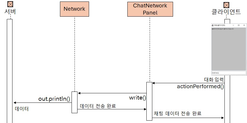 // 상대편에게 네트워크로 대화 내용 전송